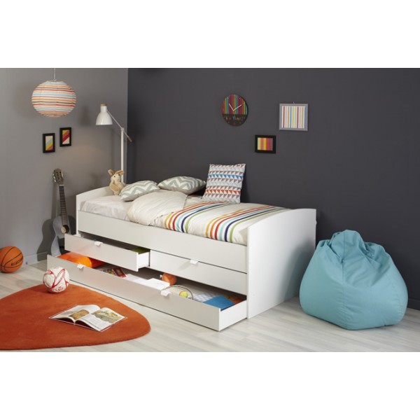 When space is at a premium our Parisot Snow cabin bed with multiple drawers could offer you a brilliant solution. This snow white bed incorporates a full length drawer that can be used as a trundle bed for sleepovers as well as storage and two spacious storage drawers, perfect for clothes, bedding toys or games it will help keep things neat and tidy in the bedroom.